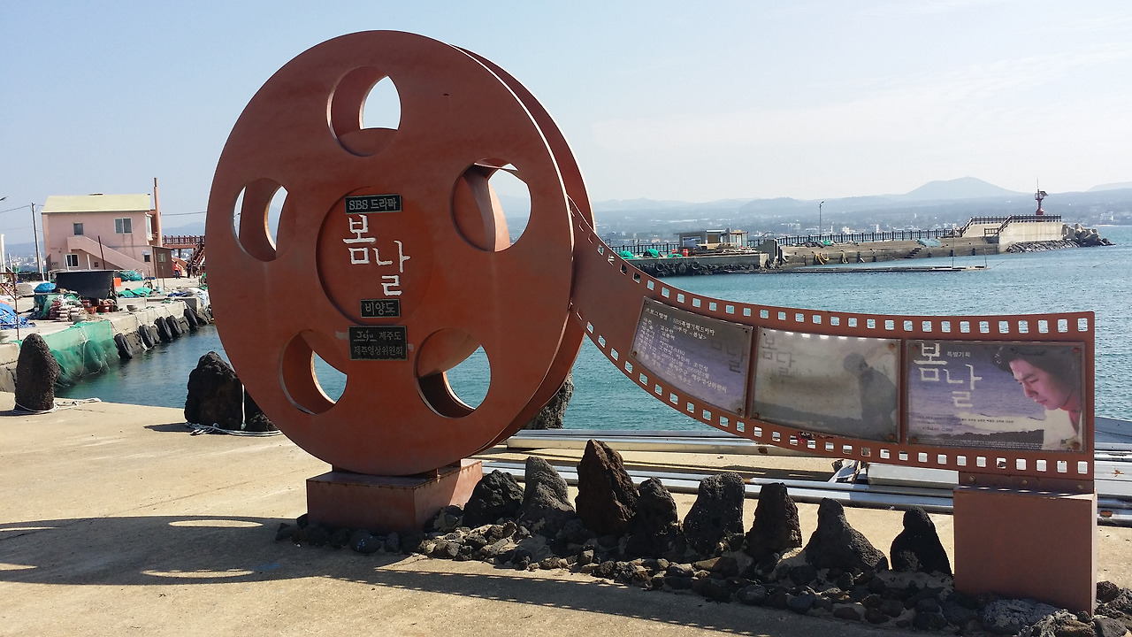 항구 근처에는 비양도가 드라마 '봄날'의 촬영지임을 알리는 조형물이 눈에 들어온다.