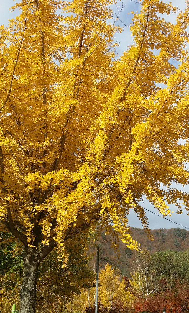 노랗게 노랗게 물든 커다란 은행나무 한 그루.