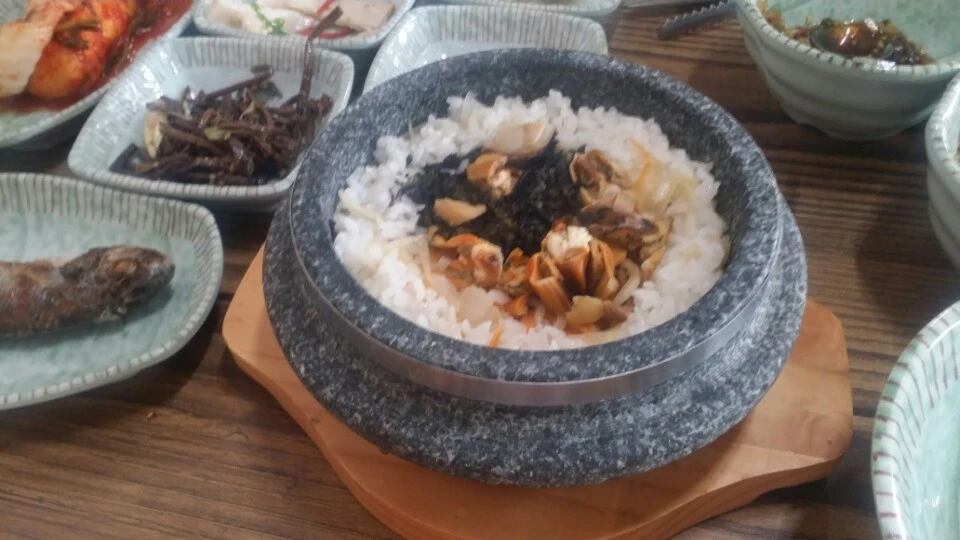 근처 식당을 찾아 기대없이 먹게 된 섭(홍합)돌솥밥과 섭죽은 의외로 맛있었다.