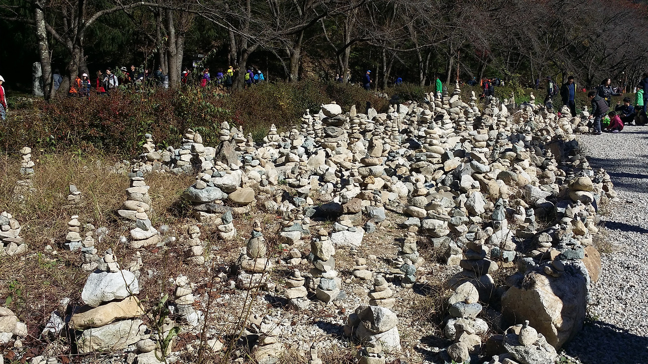 마이산을 올라가다 보면 사람들이 무수히 쌓아놓은 돌탑들을 볼 수 있다.