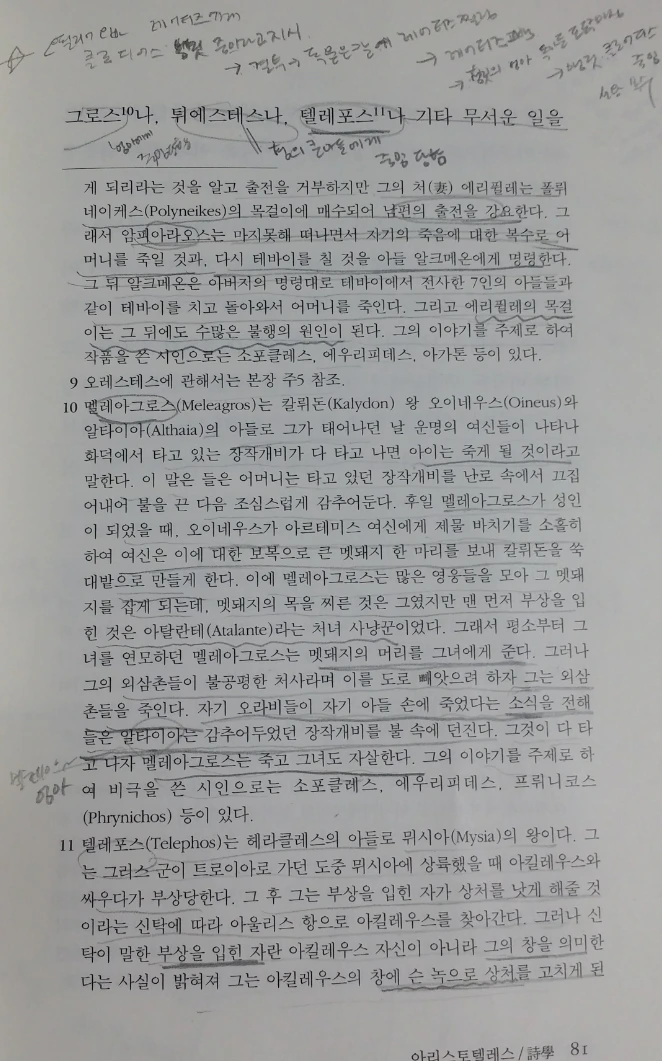 11장에서 18장에 이르기까지 각 각주에 담긴 그리스 3대 비극 작가 소포클레스, 아이스퀼로스, 에우리피데스의 신화를 읽는 재미도 꽤 쏠쏠하다.