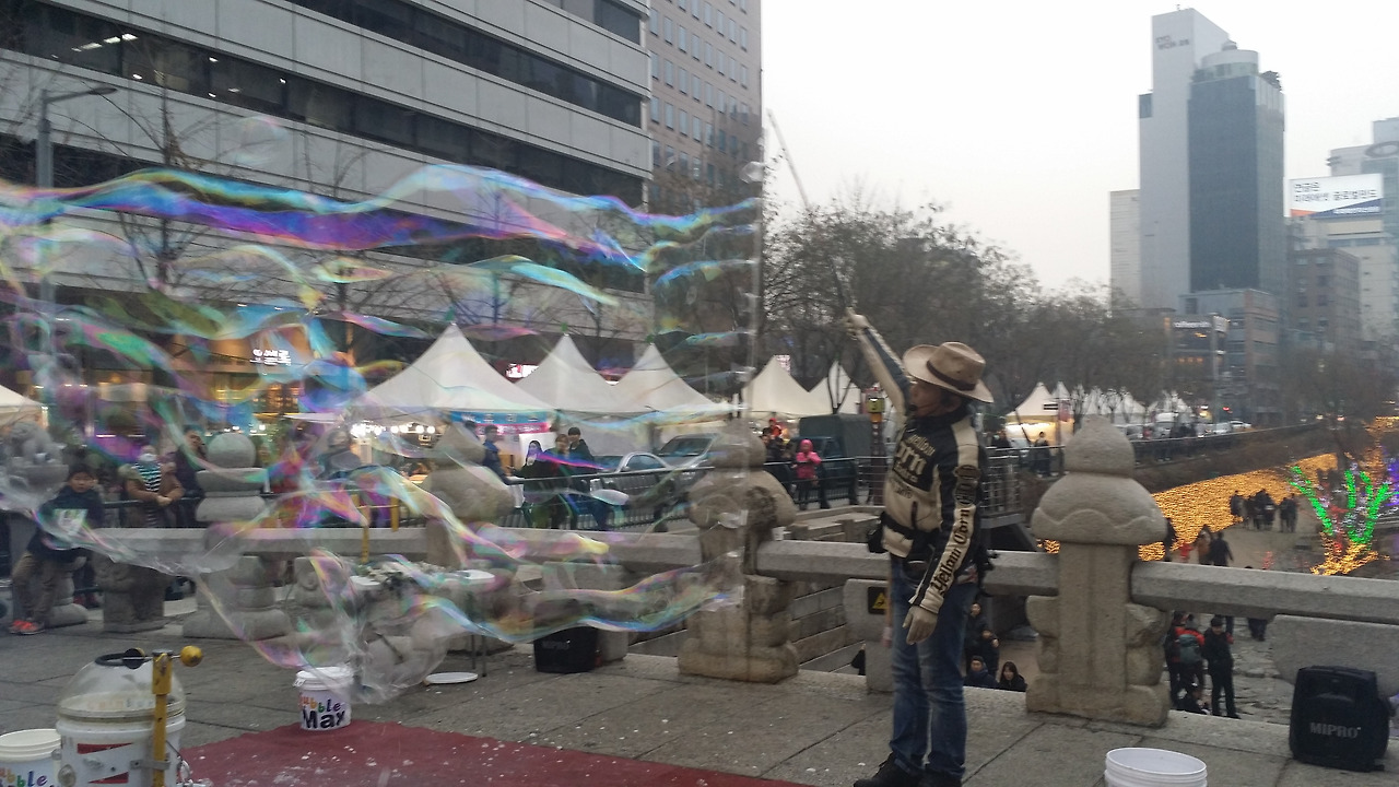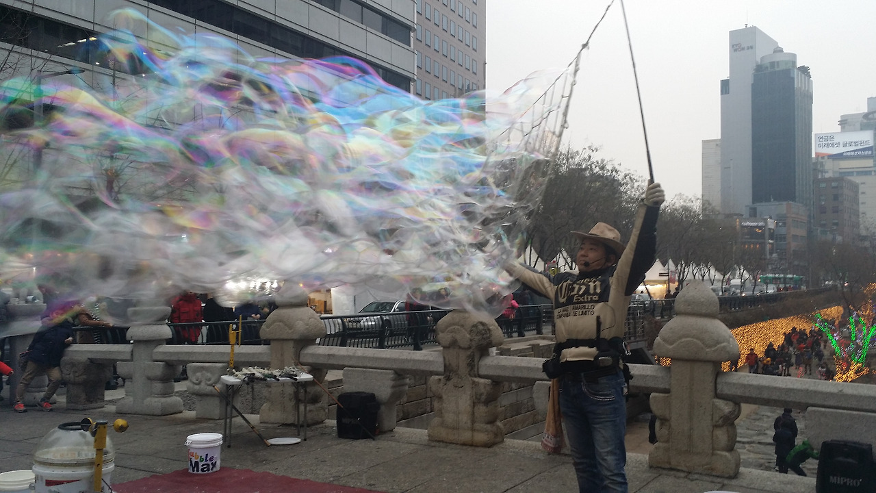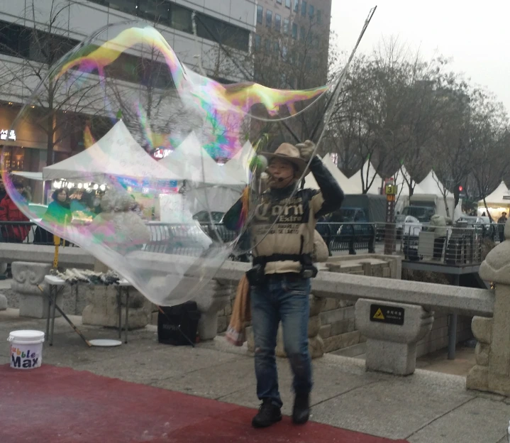 아이와 함께 우연히 보게 된 비눗방울 공연.
