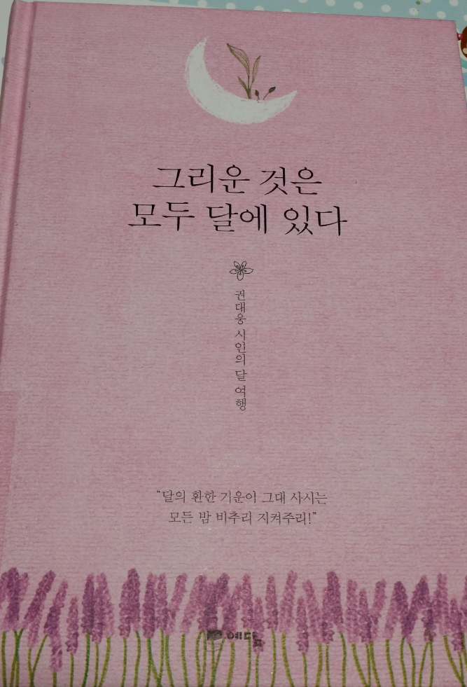 도서관 서가에서 다른 책을 찾던 중 핑크빛 표지와 제목에 이끌려 무작정 빌려온 책 《그리운 것은 모두 달에 있다》.