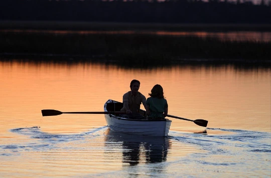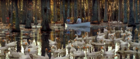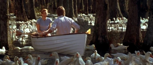 노아는 엘리를 이끌고 오리떼 가득한 강가에 단둘이 배를 타고 노를 젓습니다.