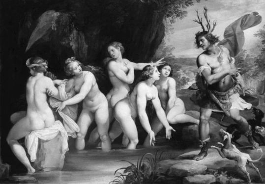 * '악타이온'의 처단 - 아르테미스가 자신의 목욕 장면을 훔쳐본 테베의 왕자 악타이온을 사슴으로 변신시키고, 악타이온은 자신의 사냥개들에게 물어뜯겨 죽는다.