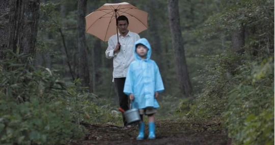 어느새 하늘은 파랗게 개고, 파아란 하늘을 보고 엄마에게 달려와 와락 안기는 유우지. 그리고 더 이상 비는 오지 않을 거란 일기예보에 직장에서 근무중이던 타쿠미 역시 숲을 향해 달립니다.