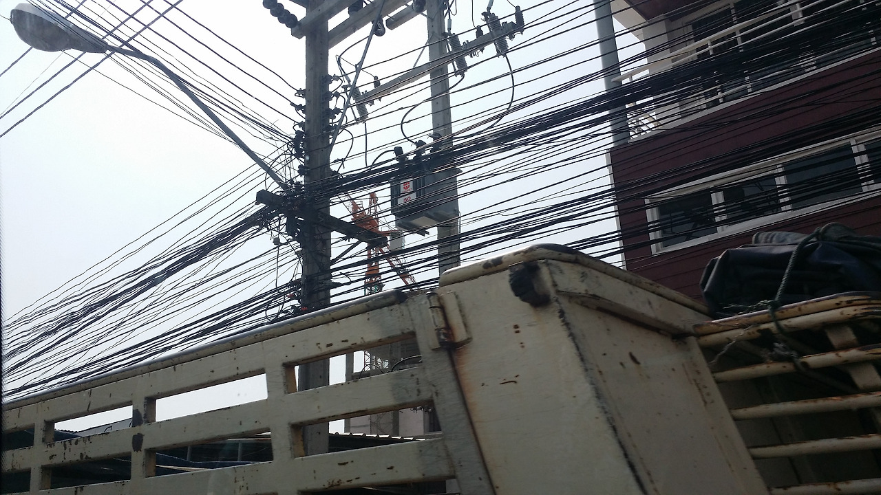 태국하면 빼놓을 수 없는 마사지를 한 번 받아보러 가는 길에 엄청난 전깃줄들을 보고 깜짝 놀랐다.