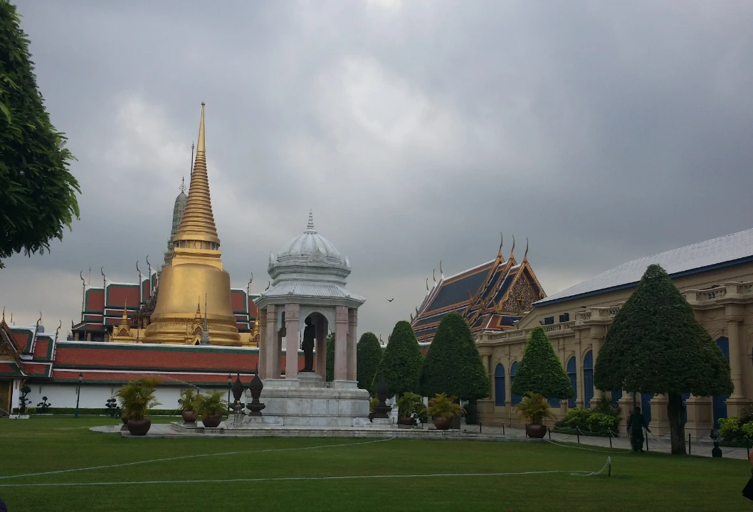 날이 잔뜩 흐리더니 왕궁 안에 위치한 에메랄드 사원 앞에 이르자 비가 쏟아졌다.