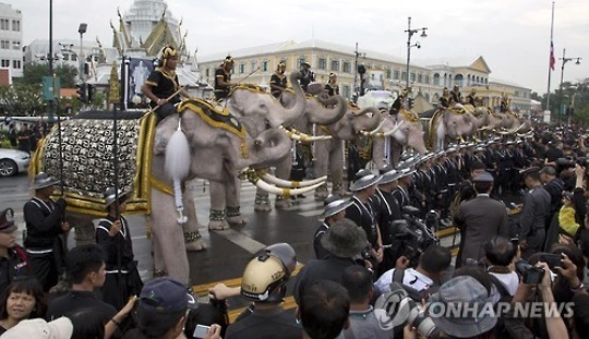태국에서 상서로운 동물로 여겨지는 흰색 코끼리 11마리가 서거한 국왕을 조문하는 장관을 보여주기도 했었다.