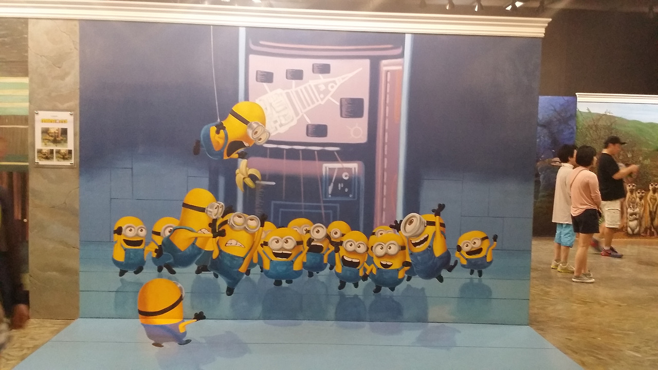 한국에서 이미 체험해 볼만큼 체험해 본 아이에게는 '어메이징'하지 않았지만, 아이가 좋아하는 미니언즈 그림도 있고 킹콩도 있고 화산 폭발 장면도 있었다. 모든 그림에 포즈를 취해 준 건 아니지만 자신이 좋아하는 그림 앞에서는 실감나게 포즈를 취해 덕분에 이곳에서 잘 나온 사진 몇 장 건질 수 있었다.