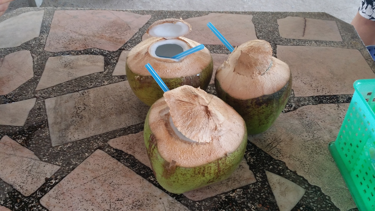 푹푹 찌는 더위 속 짧은 상념을 끝으로 코끼리에서 내려오니 테이블마다 시원한 야자 열매가 빨대까지 꽂아 세팅되어 있었다. 시원하게 쭉 마시고 숟가락으로 하얀 안쪽면을 박박 긁어먹는다.