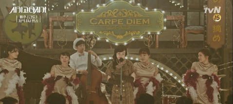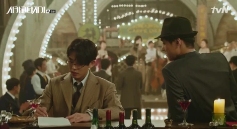 전생(1930년대 경성) 속 '카르페디엠' 술집에서 글을 쓰고 있는 서휘영(한세주의 전생)과 그 옆에서 얘기를 주고받는 유진오가 있다.