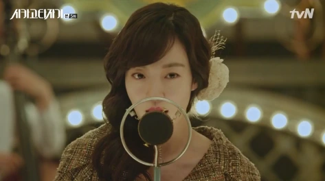 너는 글 안쓰냐는 서휘영의 물음에 자신은 글 말고 자유연애 하겠다는 유진오, 그의 손이 무대 위 노래하는 수현('전설'의 전생)을 가리킨다.