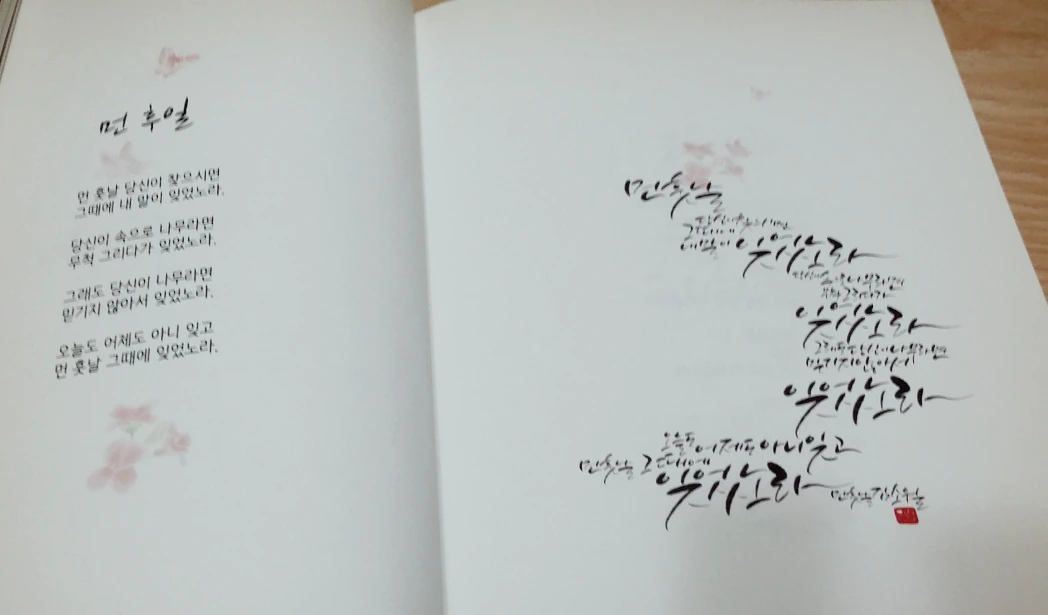 각 시마다 그에 알맞은 분위기로 정성스레 작업하신 캘리를 바라보고 있으니