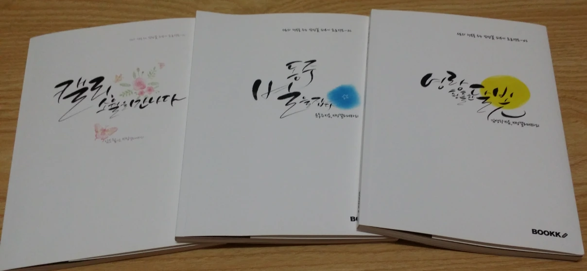 너울너울 춤추는 듯 한 캘리, 명쾌한 느낌이 드는 캘리, 사랑스러운 느낌 가득한 캘리, 앙증맞은 느낌의 캘리, 애절하게 다가오는 캘리, 고즈넉한 분위기의 캘리, 고독함이 전해지는 캘리 등