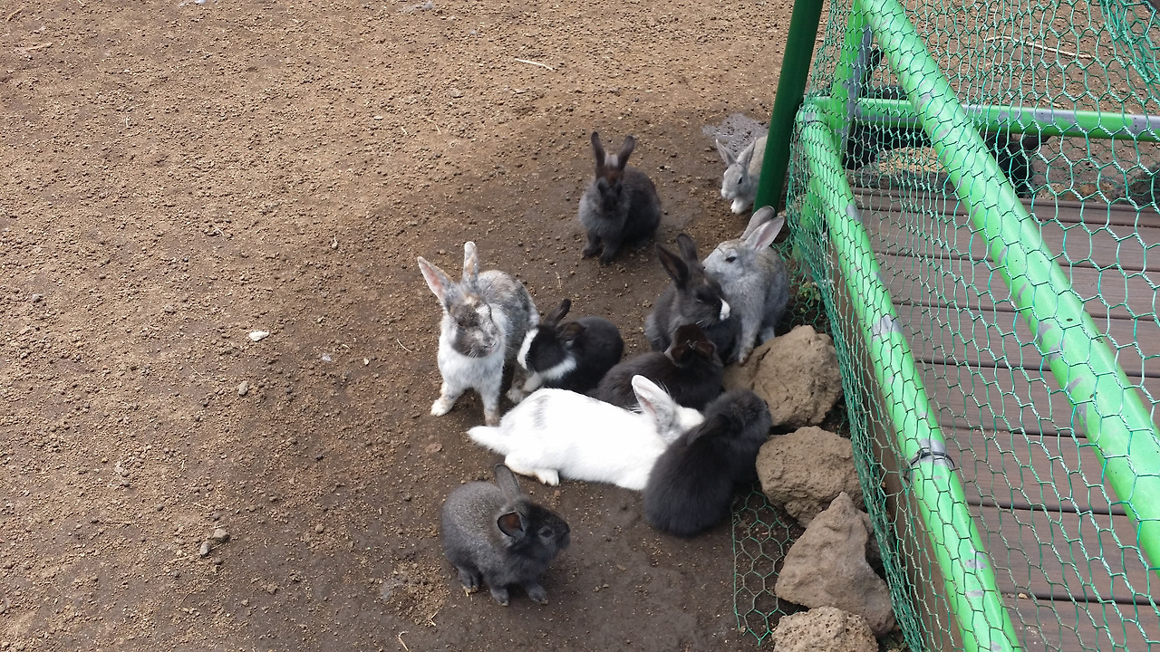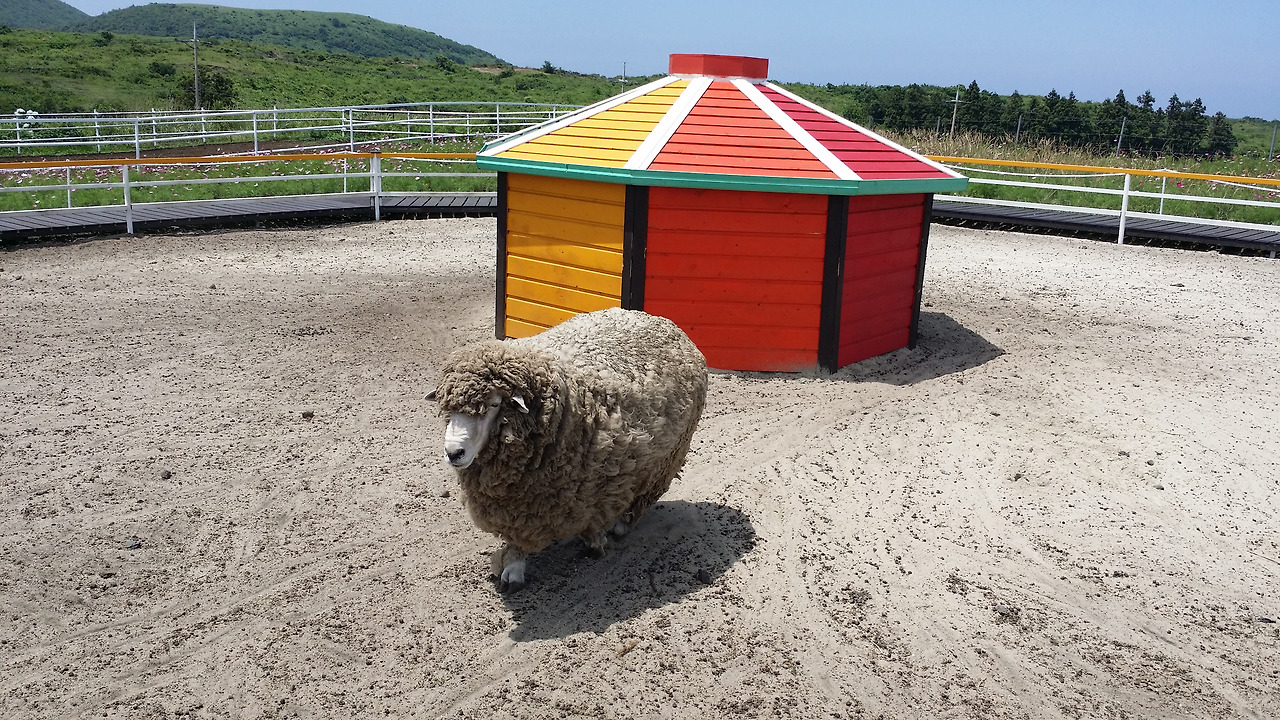하차 후, 아이는 동물들 먹이 주느라 바쁘다.