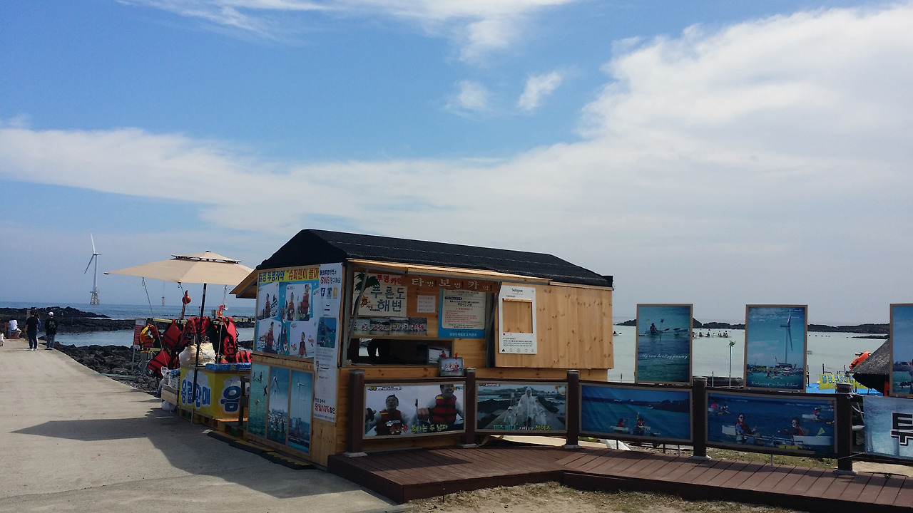 바로 레일바이크를 타러 갈까 하다 그냥 지나치기 아쉬워 월정리로 다시 거슬러 올라갔다. 월정리에서 김녕 가는 해안도로쪽에 위치한 투명 카약을 타러.