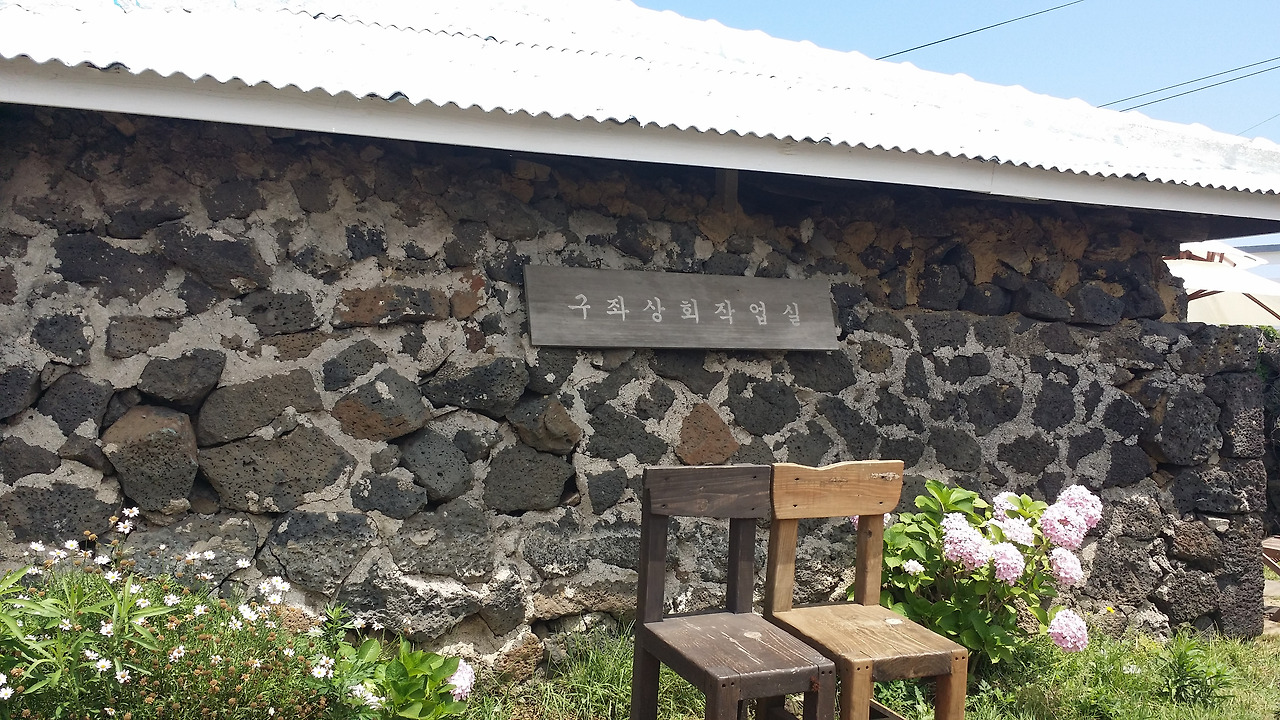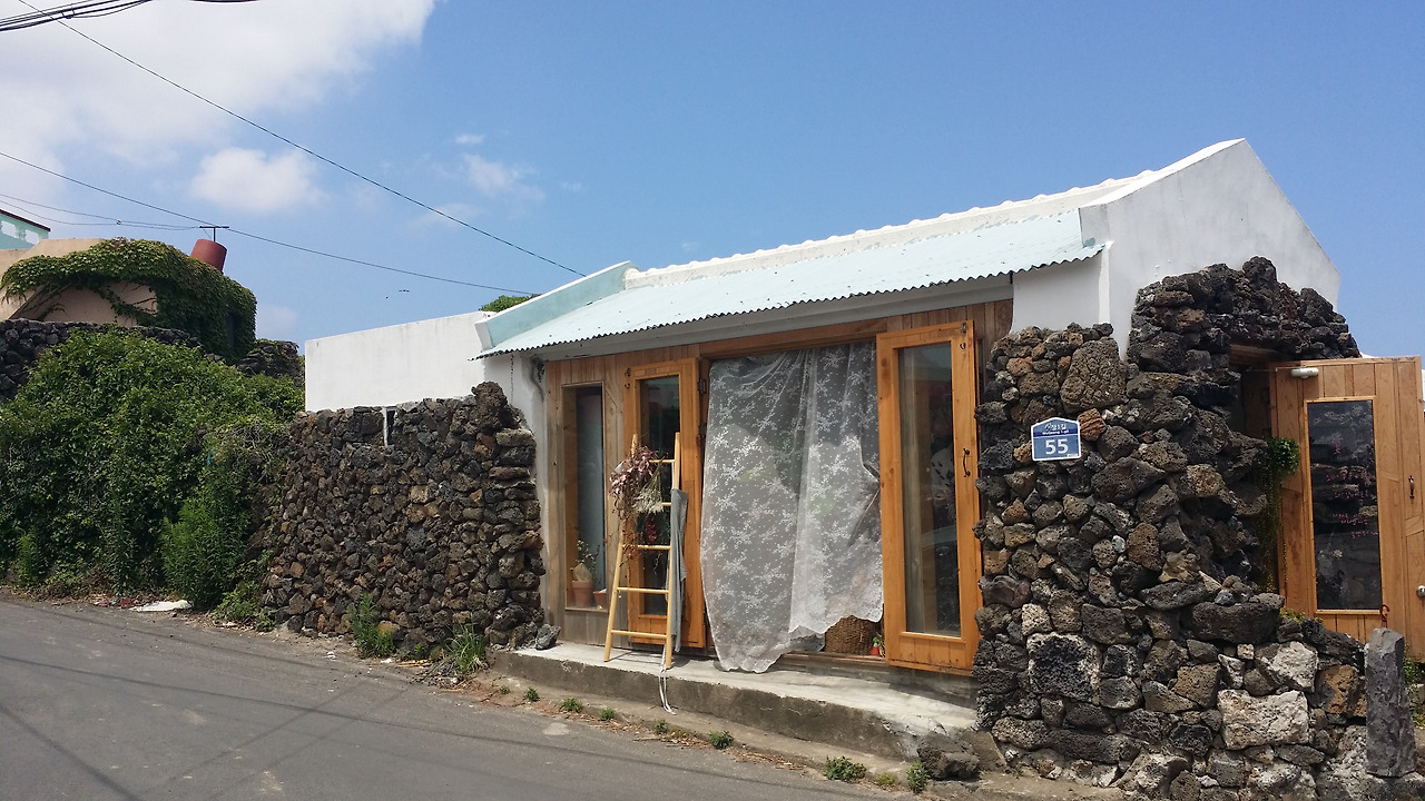 당근케이크로 유명한 카페 '구좌상회'의 정겨운 입구 모습.