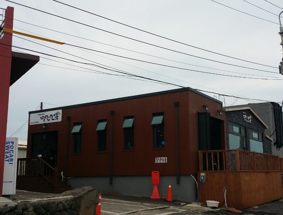 또 달라진 외관. 계속 리모델링 되는 거 같은 명진전복. 하긴 올해는 첫방문이다. 왼쪽엔 커피 마시거나 대기하는 휴게실과 쾌적한 화장실이 완공됐고, 오른쪽엔 신발 벗고 올라가는 방 대신 전부 의자에 앉아 먹는 테이블로 바뀌었다.