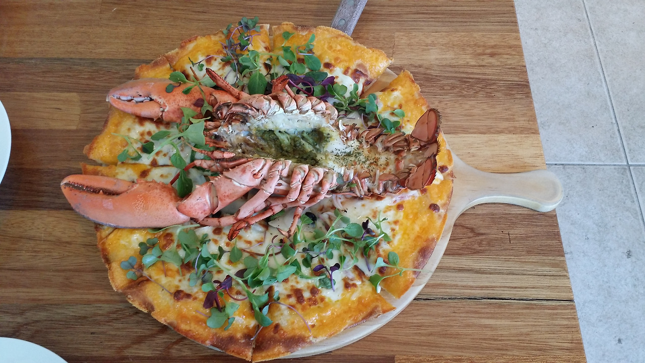 평일이라 그런지 가격이 비싸서 그런지 식당 안은 생각보다 한산했다. 주문을 하고 조금 있으니 랍스타 한 마리가 통째로 얹어진 피자가 나왔다.