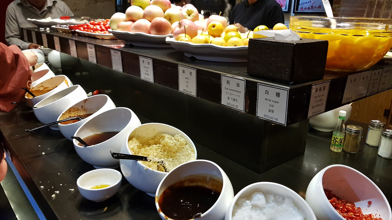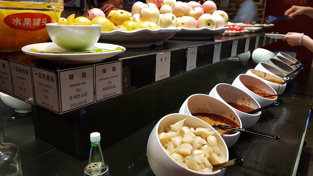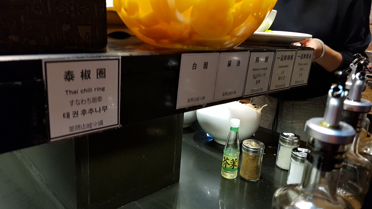 한국은 테이블 위에 냄비를 얹는 식이지만 중국은 샤브샤브 냄비가 대개 테이블 밑으로 쑥 들어가 있다.