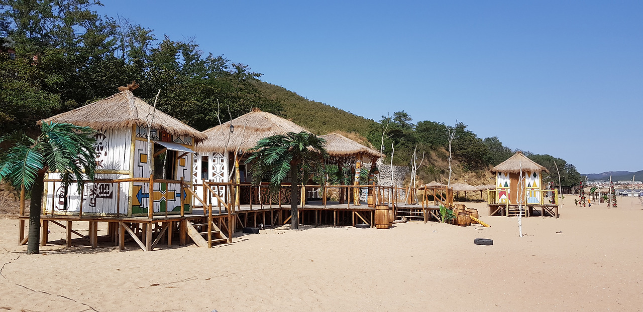 해변 한쪽엔 이렇게 이국적인 휴양지 풍경(영화 촬영을 위한 셋트장이 그대로 남아있어서)인 반면,