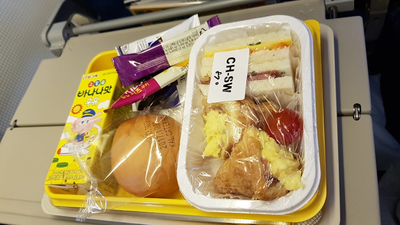 어린이 기내식(위 사진)은 괜찮은데 어른용 빵은 좀 퍽퍽하다.