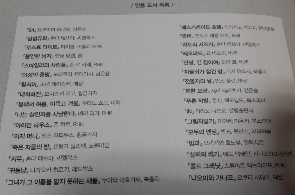 이 중 내가 접한 작품은 히가시노 게이고, 미야베 미유키, 오쿠다 히데오 정도 밖에 되지 않으니 도전할 작품들이 꽤 많다.