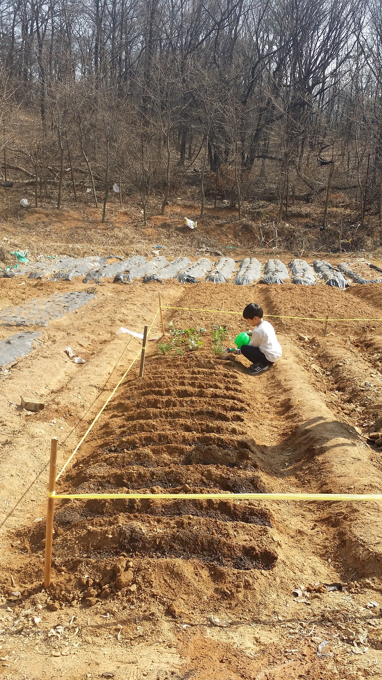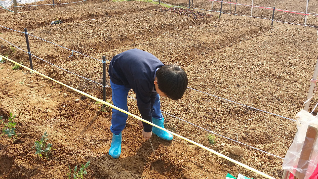 비록 아이는 호미로 땅굴 파는 일을 더 좋아라 하지만..