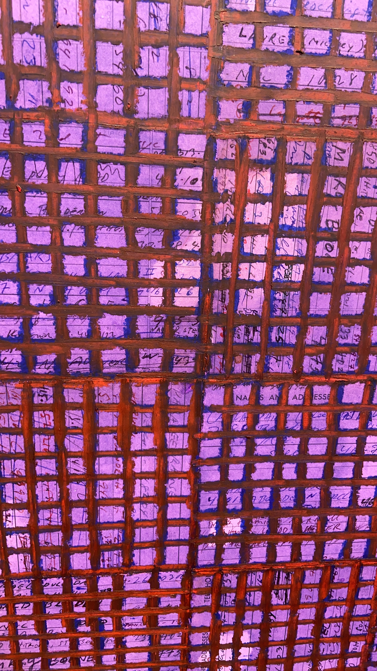 현재는 시카고를 기반으로 작품 활동을 하고 있는데 작가는 자신의 여권, 출생증명서, 사용하던 주소록, 전화번호부, 가족사진 등 개인의 내밀한 기록들 위로 그리드를 그린다. 오일 스틱을 사용해 반복적으로 그린 그리드는 멀리서 보면 격자무늬가 그려진 추상회화이지만 가까이 들여다보면 작가의 내면과 역사, 경험과 기억들이 보일 듯 말 듯 감추어져 있다. 삐뚤빼뚤 하게 그물처럼 이어져 있는 선들은 상당한 힘으로 눌러 그린 것이다.
