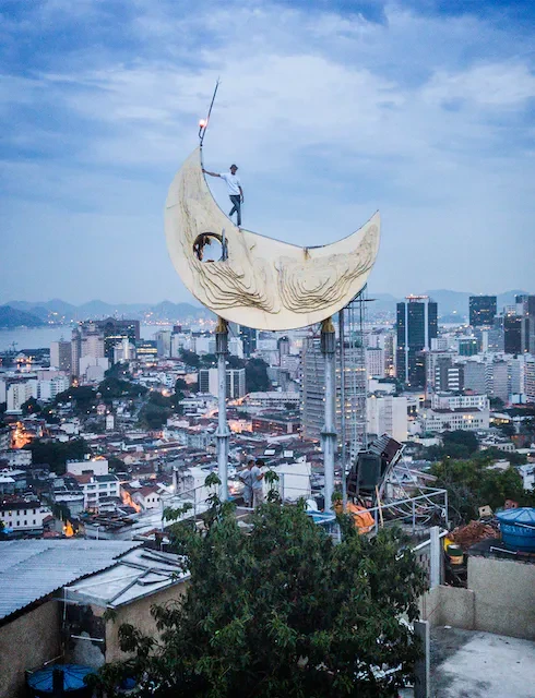 브라질 리우데자네이루, 가장 오래된 빈민가의 꼭대기에 달이 떠있다. 2009년 Casa Amarela(Yellow House)의 개조가 시작했던듯싶다. 조금 더 명확하게 알아봐야 하겠지만, 정말 위험한 지역이었다고 한다. 그 꼭대기에 있는 집을 한채 구입하여 아무거나 가져다가 집을 꾸미기 시작했다. 노란 페인트를 칠해 노란 집, 이라는 이름이 붙었다. 그리고 그 위로 달을 올렸는데, 그 달 안으로는 공간이 있다. 잠을 잘 수 있거나 클래스룸으로 쓸 수 있다고 하는 것 같았다. 개조 후 지역에 기부를 했단다.