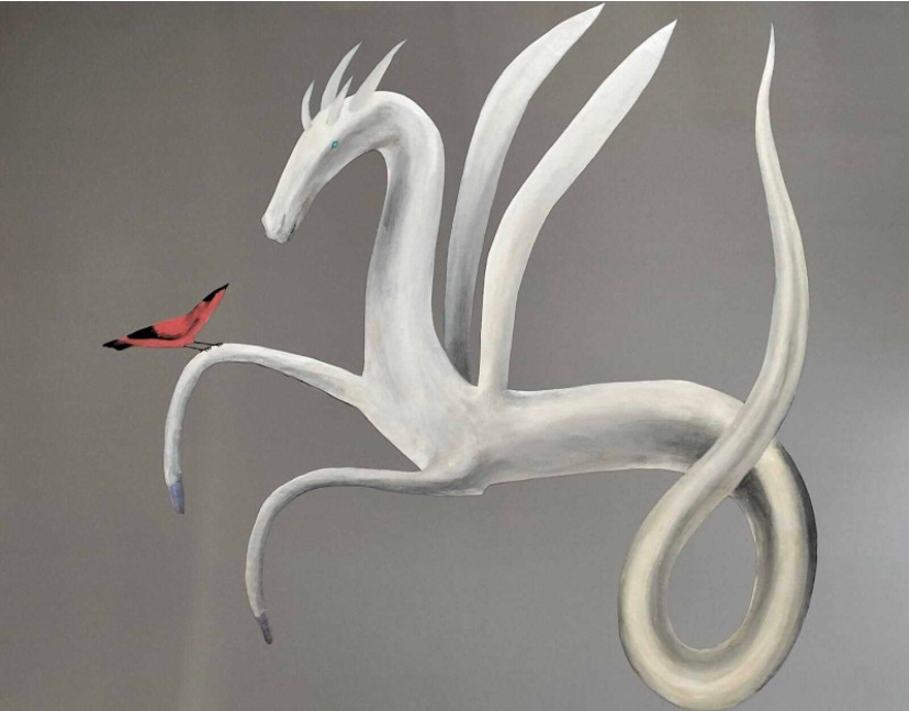 흰 용은 작은 새와 무슨 이야기를 그리 진지하게 하고 있나. 하얀 용의 몸이 우아하다. 이 작가의 그림들은 단순하면서도 귀여웠다. 동물들을 주로 그리는 것 같아 반가웠다. 마침 찾아다니고 있었는데.