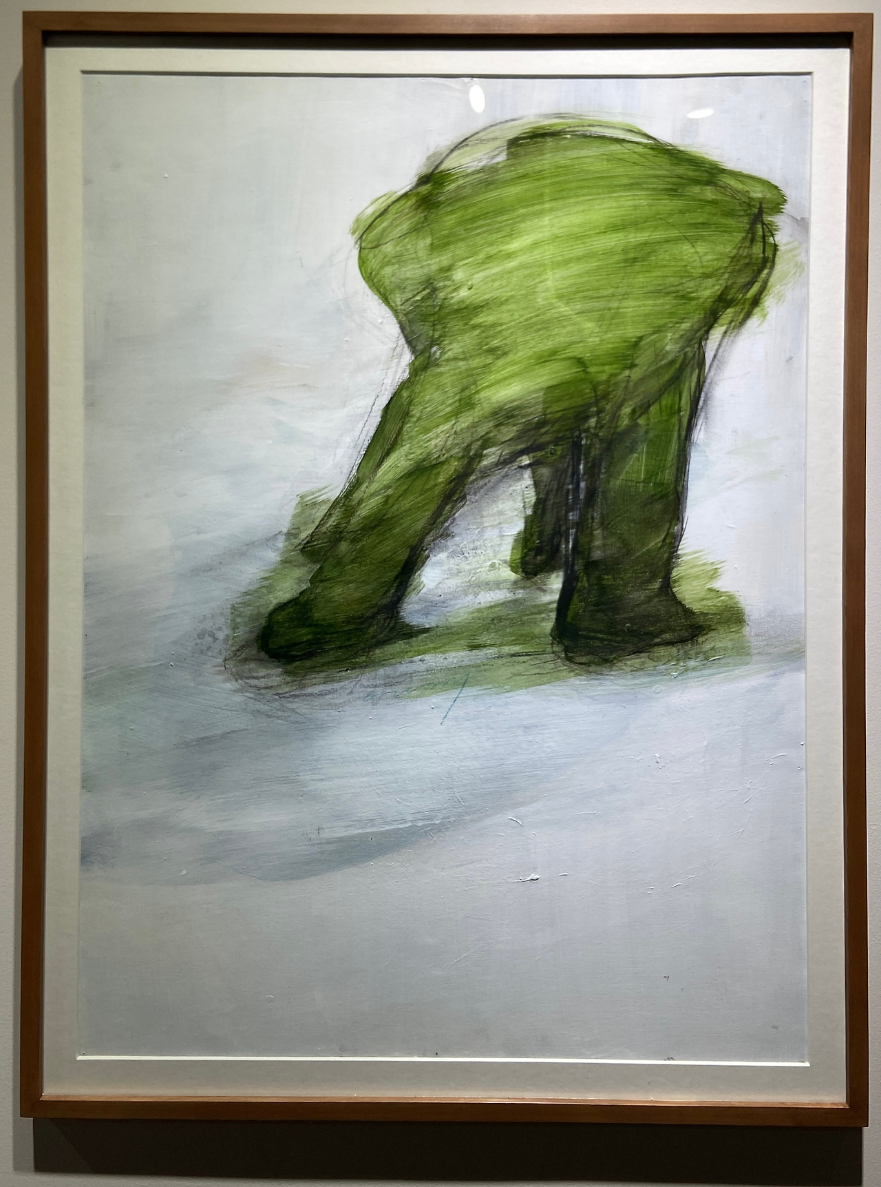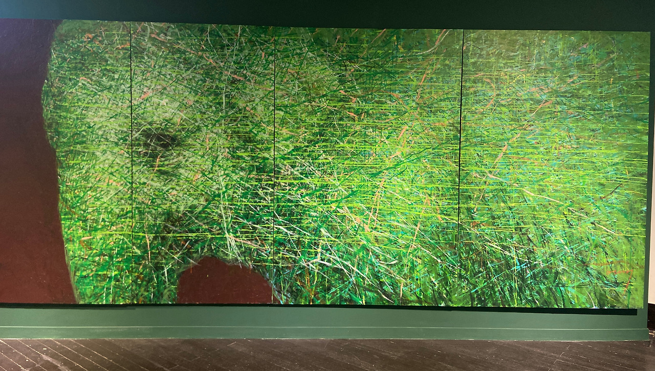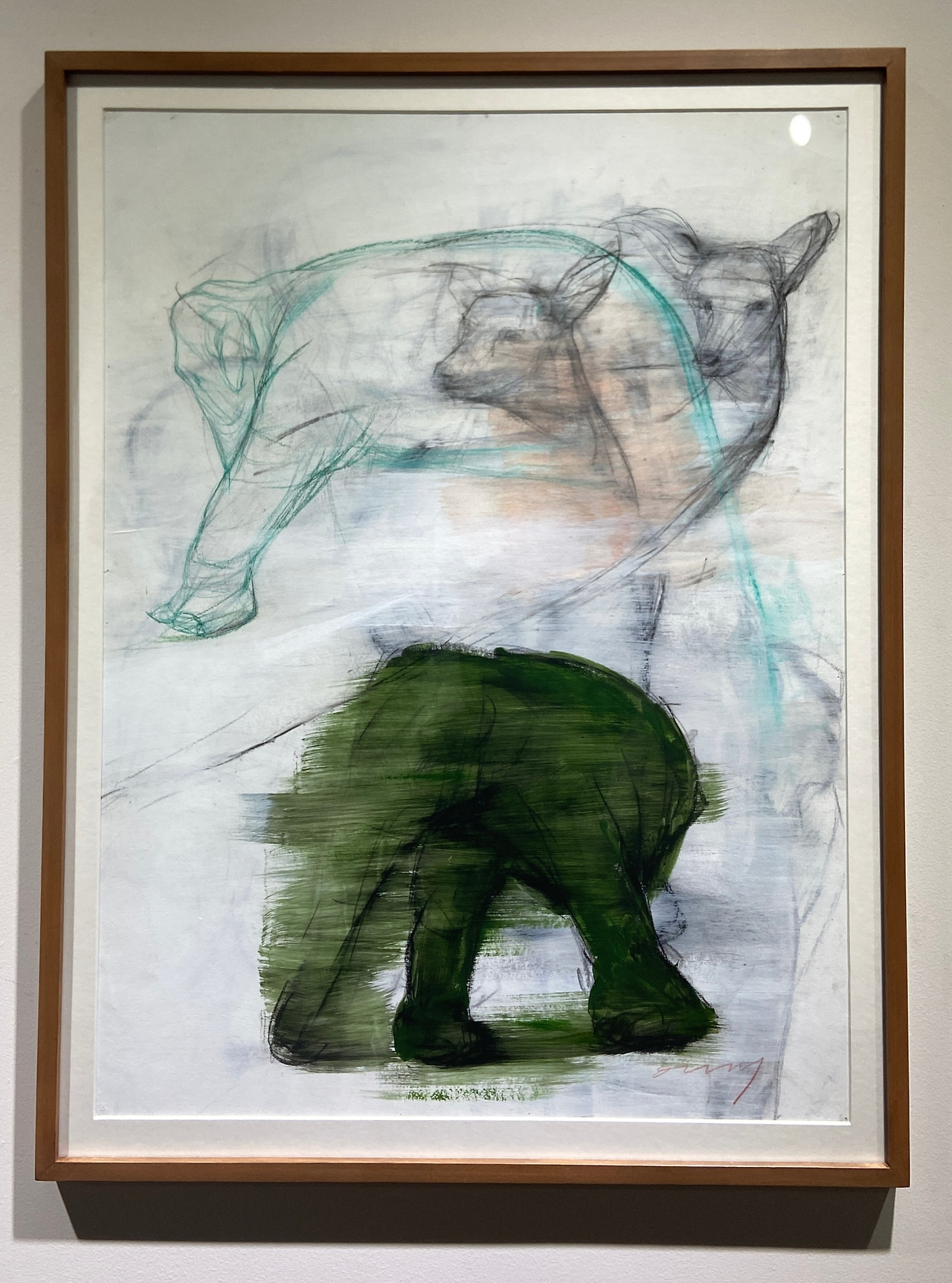 전시장에는 코가 없는 덩치 큰 흰 코끼리가 한 구석을 차지하며 서 있고, 자유로운 선의 분명하지 않은 초록빛 스케치들이 드문 드문. 한 방을 지나면 거대한 숲 빛 코끼리가 있다. 색에 빠져 든다. 아크릴과 오일스틱을 같이 썼다고 했다. 캔버스 세폭으로 코끼리의 거대함이 살아났다. 수많은 선들을 겹치고 겹쳐 내니 코끼리가 숲이 되었다. 한 녀석은 크게 동요하지 않는 표정이라고 나는 느꼈다. 뒤돌아서면 왠지 모를 슬픈 눈의 코끼리가 또 함께 있다. 코끼리에서 눈을 떼지 못하다가 다시 시선을 돌리면 흔들리는 맑은 물. 그리고 흔들리는 꽃과 바람의 풍경. 다시 안으로 들어서 볼까. 온통 흔들리는 풍경들이다. 어지럽다는 생각이 들지는 않는다. 꽃밭이니까. 밤의 풍경이니까. 흐릿한 풍경을 건너, 흰 여백과 들리지 않는 속삭임, 나는 듯한 선들이 바람처럼 흩어지는 마지막 방을 만난다.