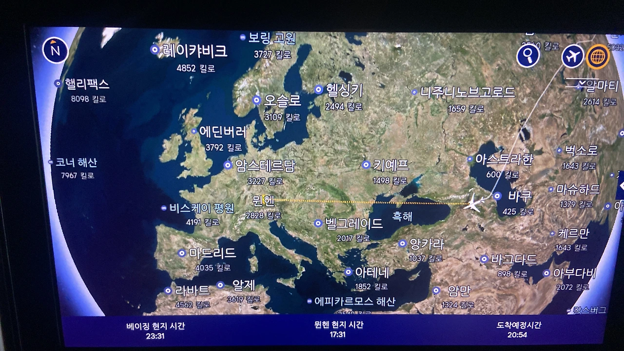 베이징으로 가는 비행기에서나 창가를 차지할 수 있었다. 그런데… 중국 경유는 매우 위험한 듯… 지연이 얼마나 되었던지 뮌헨 가는 비행기를 타야 하는데…. 공항 내에서도 충전기를 찾느라 내내 헤매고 별로 좋은 기억이 없다. 다시는…이라는 생각으로…