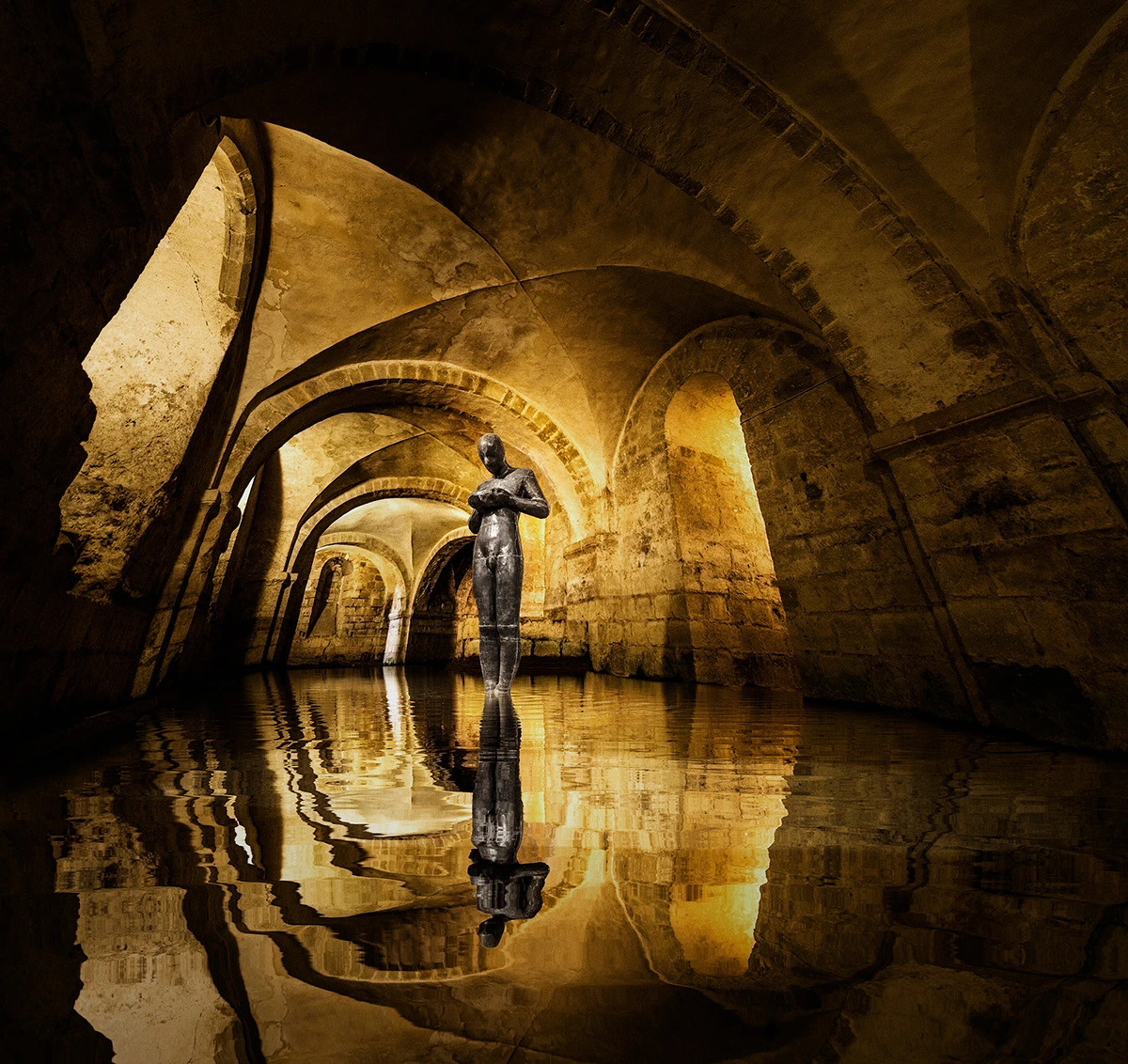 이 작품의 경우에는 과거에 지어진 한 고딕 건축물 안에 현대 미술이 함께 공존하며 시각적으로 공명을 일으킨다. 중세의 성당 지하에 서 있는, 현대에 사는 그의 몸 안에는 튜브가 연결되어 있다. 장마철이 되면 물은 그의 무릎 높이까지 차오르면서 몸 내부의 튜브를 통해 모아진 그의 두 손 사이로 고인다.