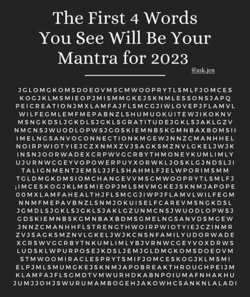 만트라는 진언이라고도 하며 어떤 주문 같은 것을 의미하는데, 기존의 용어보다는 한 해를 어떤 마음으로 살아가면 좋을지에 대한 나만의 키워드를 잡는 것으로 생각해 보면 좋을 것 같다.