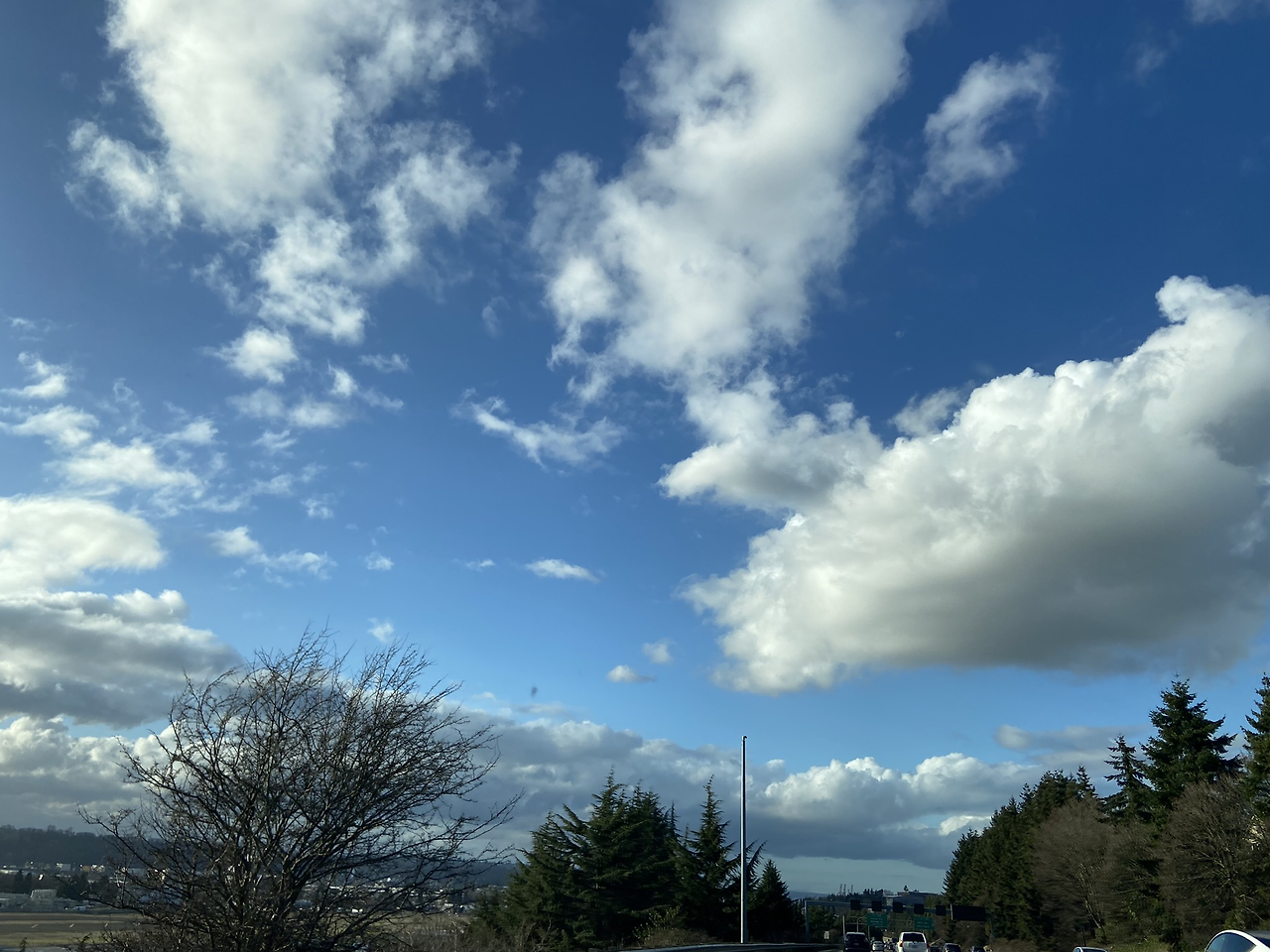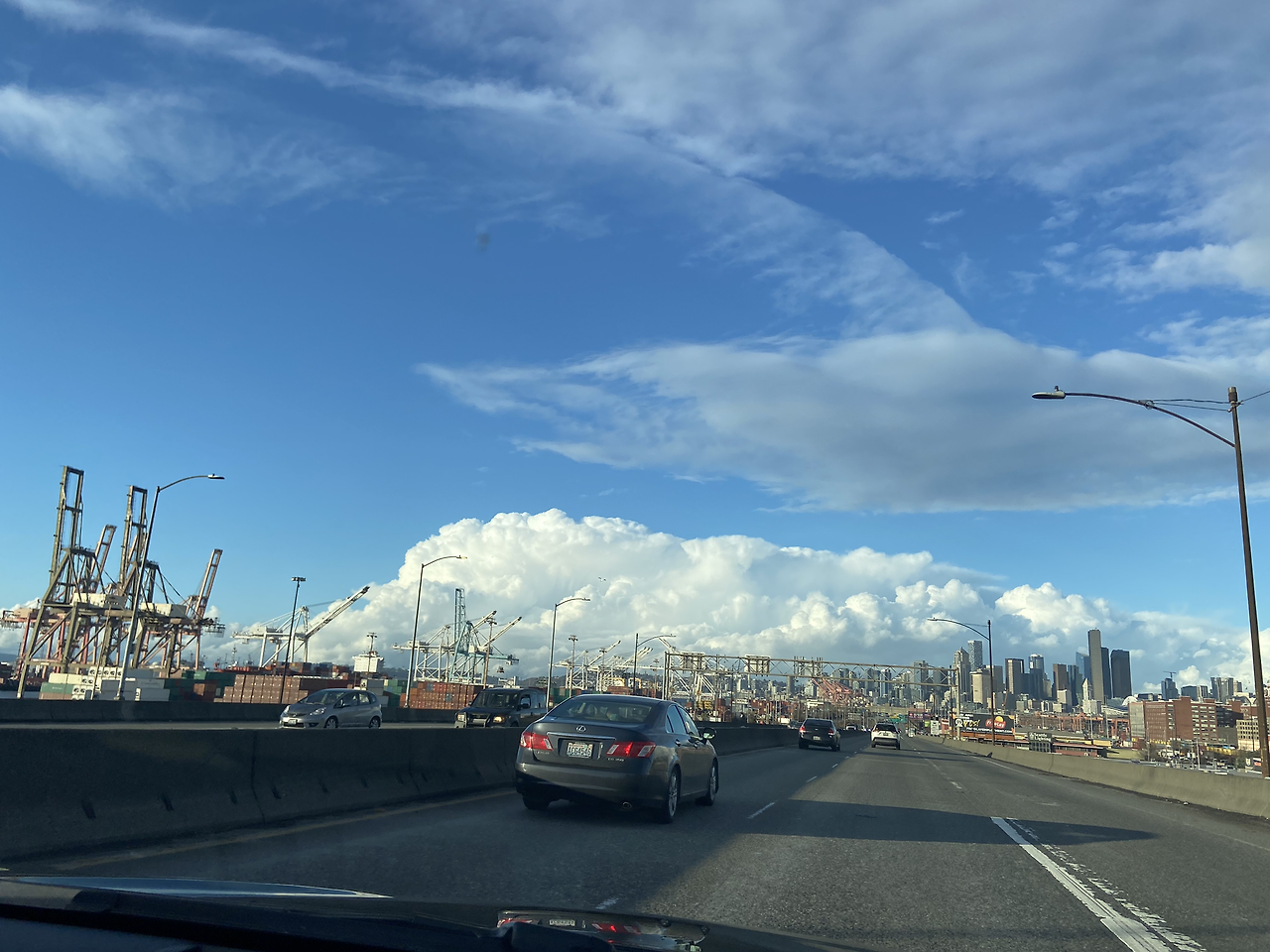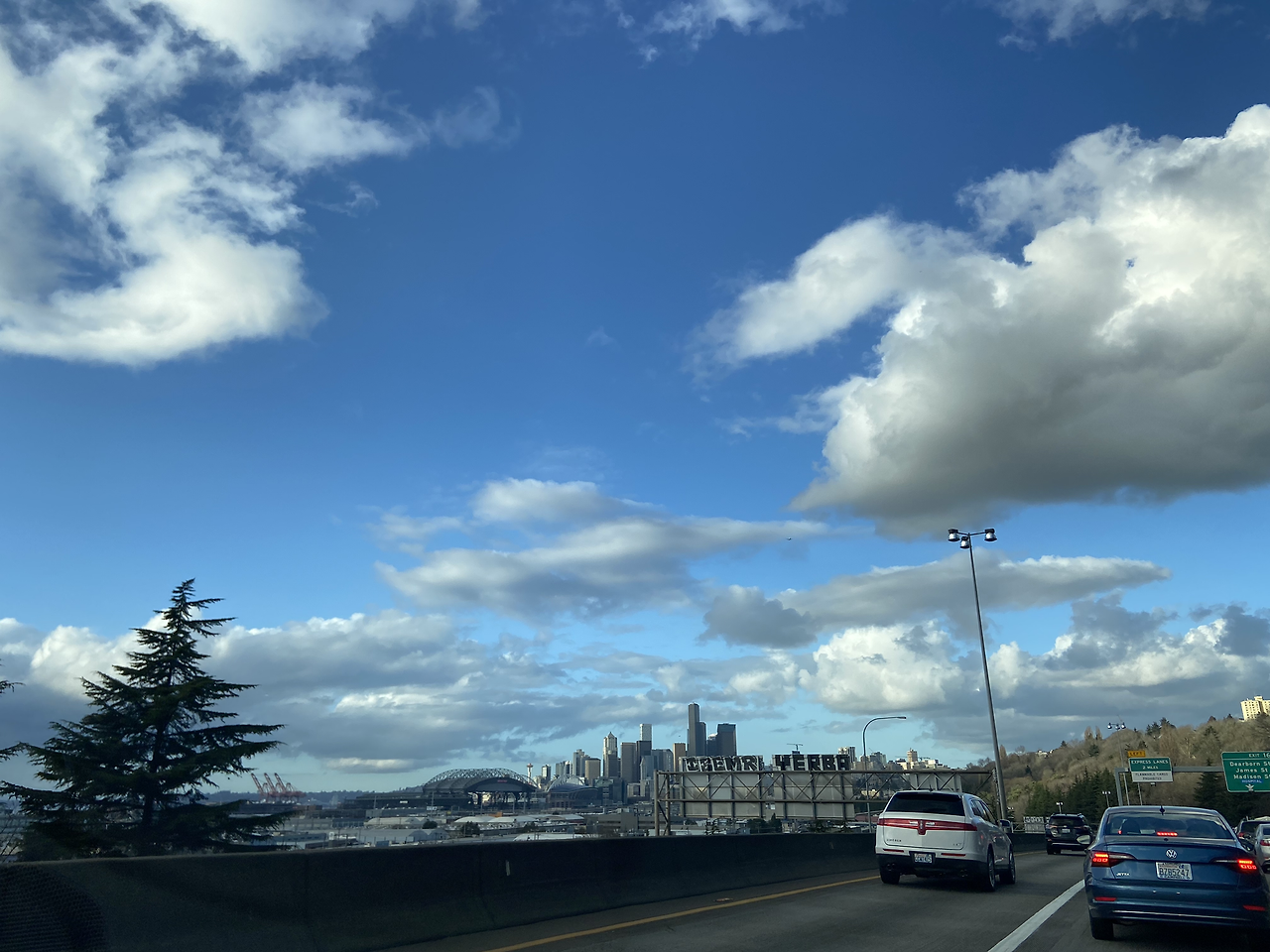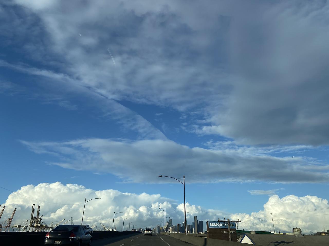 시애틀 시내로 나가면서 하늘을 자주 보게 된다. 한국의 하늘에 비해 뭔가 좀 낮은 느낌이랄까. 좀 더 가깝게 느껴지는데 볼 때마다 구름의 형태나 구름이 깔리는 하늘의 빛깔이 오묘하여 자꾸만 보게 된다.