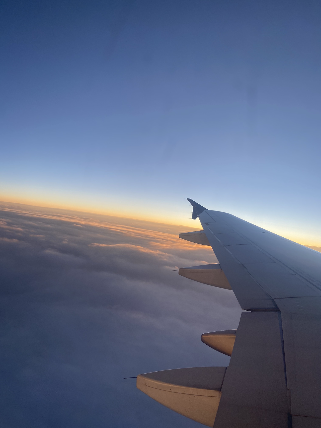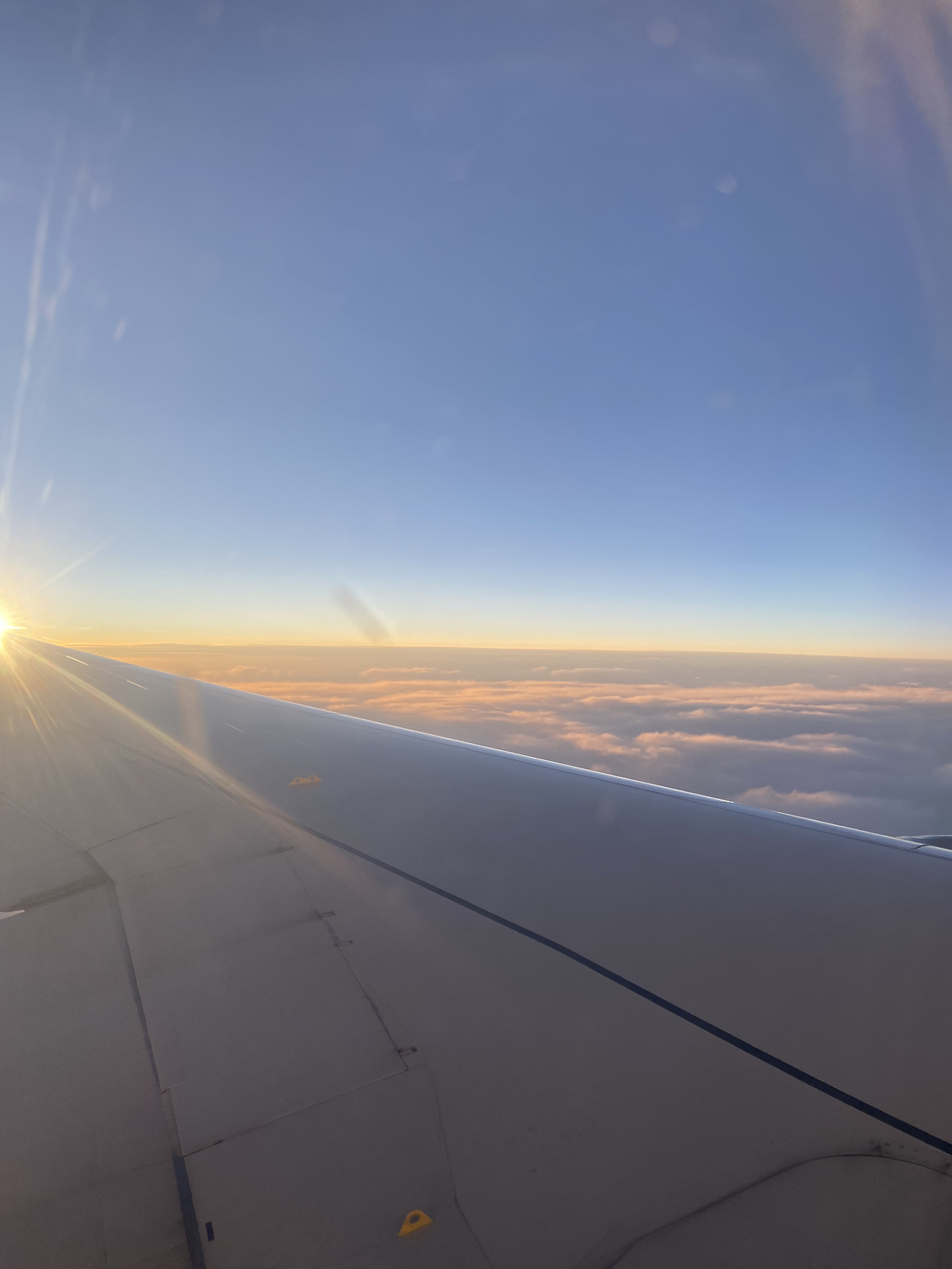 정신없는 와중에 탔던 비행기. 살구빛으로 물드는 구름이 마음을 차분하게 해 주었었다.