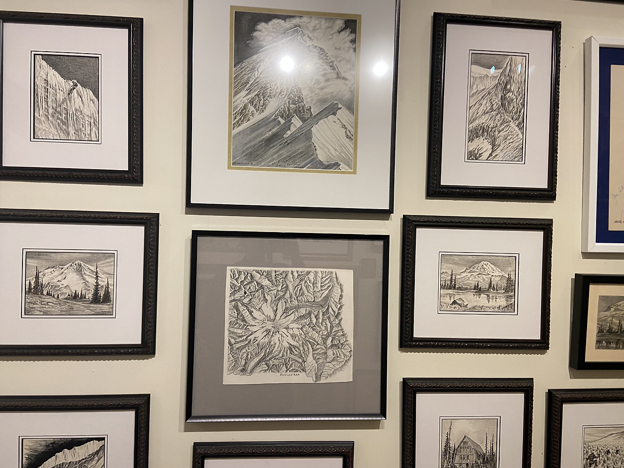 가는 내내 나무들이 우거진 길들이 아늑하게 해주는 기분이 들어 나무들과 함께 조금 걷고 싶었지만 아쉽게 되었다.하지만 미국에서 오래 살았던 동행인은 이 길이 매우 위험하다고 했다. 가로등이 하나도 설치되어 있지 않기 때문에 밤이 되면 정말 아무것도 보이지 않는다는 것이다. 왜 가로등이 없느냐 물으니, 사람이 많이 다니지 않기 때문이라고 한다. 가로등을 세우는 하나하나가 결국 다 돈인건데, 워낙 땅이 크다보니 구석구석 디테일하게 신경 쓸 수가 없는 것처럼 보인다. 레이니어산이 왜 레이니어라는 이름인지 궁금했지만, 아직 리서치를 해보진 못했다. 중간에 들렀던 레스토랑 및 기념품 가게에는 빅풋이 있었고, 시애틀에서도 빅풋을 종종 보게 되어 좀 궁금해하고 있던 차였는데 워싱턴주에서 빅풋을 봤다고 한 사람들이 많았다는 걸 보니 이 레이니어 산 쪽에서 사람들이 뭔가를 보았던 게 아닌가 싶다.