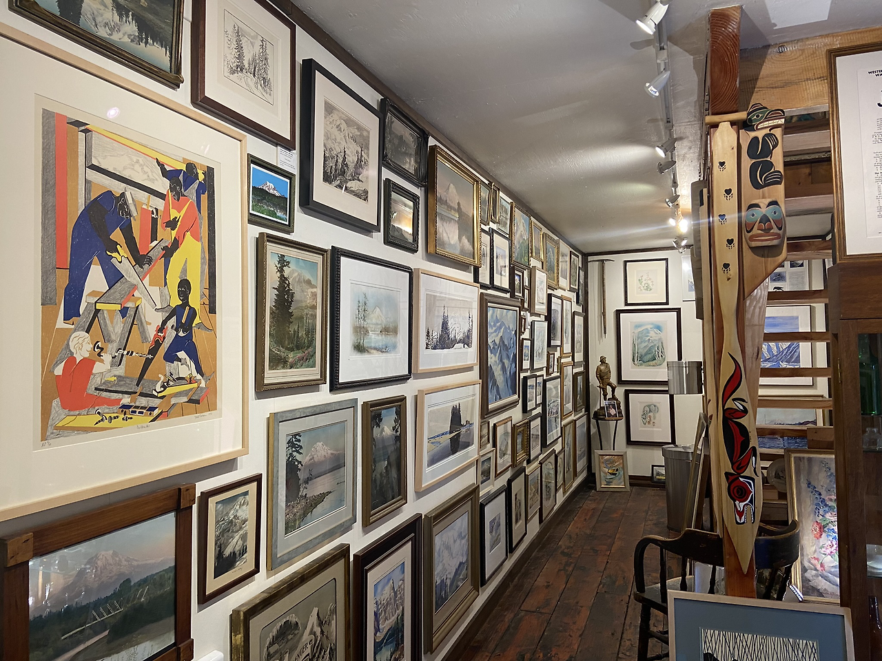 2층에도 그림들이 빼곡했는데, 그림 스타일이 다 달라서 보는 재미가 있었다. 아마 근처의 지역예술가들이 연대가 돼있는 게 아닐까 싶다. 예술계의 생태계에 대해 리서치를 좀 해보려는 참인데, 이런 로컬 아트 갤러리들이 외국이나 한국에선 어떻게 운영이 되고 있는지, 어떤 방향이면 더 좋을지 그런 질문들이 생긴다.