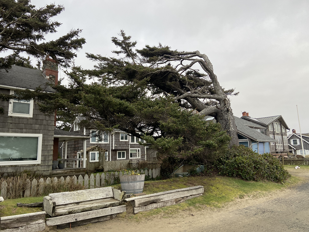 바람이 얼마나 강한지 나무는 거의 땅에 누울 지경이다. 그럼에도 불구하고 살아남아 독특한 자세로 자라고 있는 너.