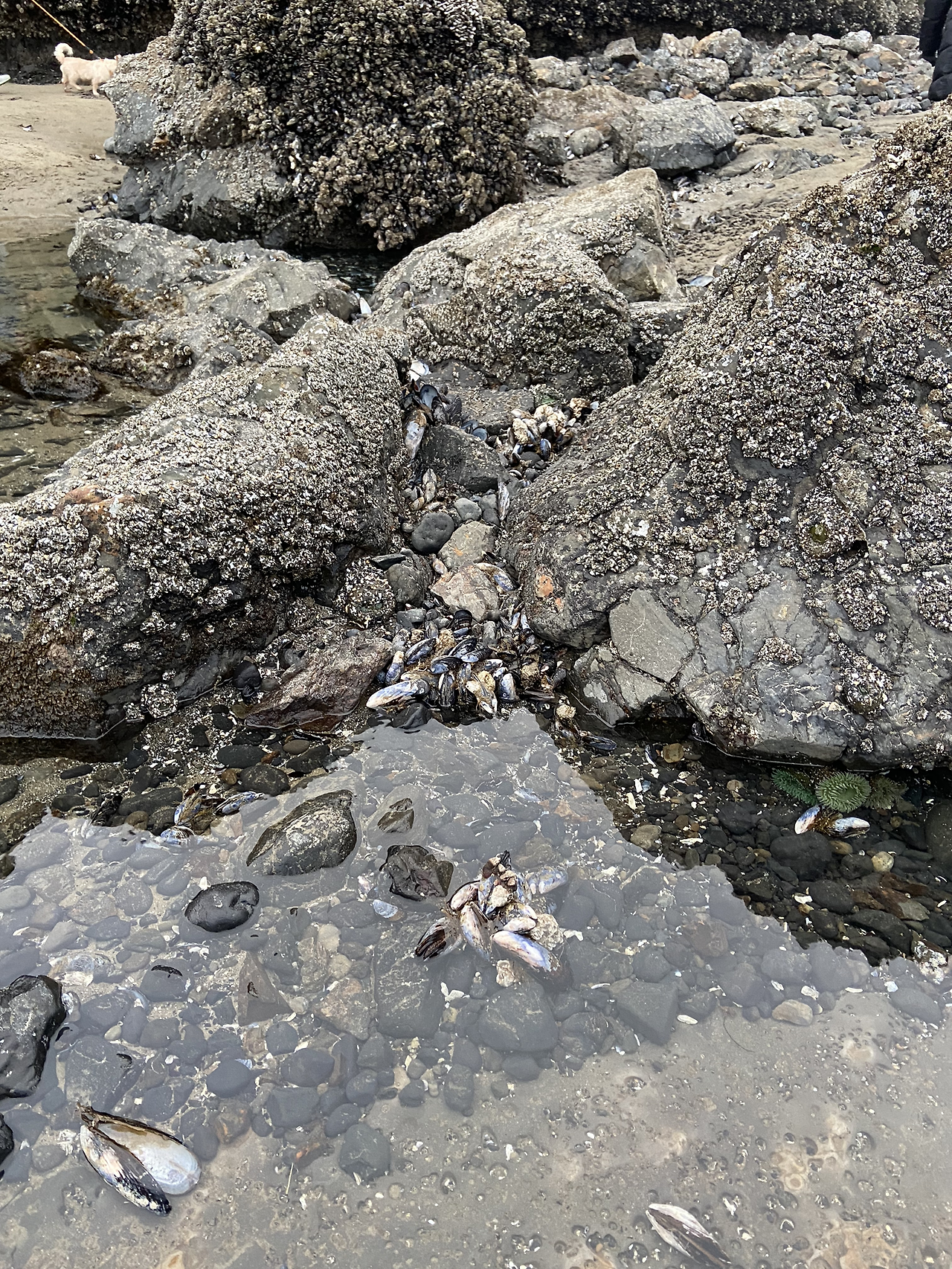 썰물 때라 넓은 바닷길을 걷는다. 특히 큰 개들과 함께 바닷길을 거니는 분들을 많이 보았는데, 덕분에 신나게 뛰어노는 아이들을 볼 수 있어 즐거웠다. 한 친구는 프리스비를신나게 하다가 갑자기 하기가 싫어졌는지 주인이 뒤 돌아 있는 사이 슬그머니 내려놓고 만다. 지나가다가 문득 보게 되어 우리는 모두 함께 웃음을 터트리고 말았다.