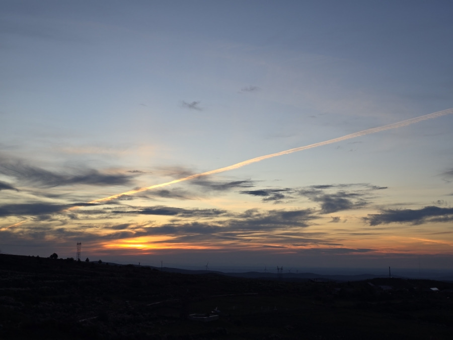 구불구불 이어진 산길을 걷다가 뒤를 바라보니, 하늘 위로 비행기 한 대가 대각선으로 활주하고 있었다.