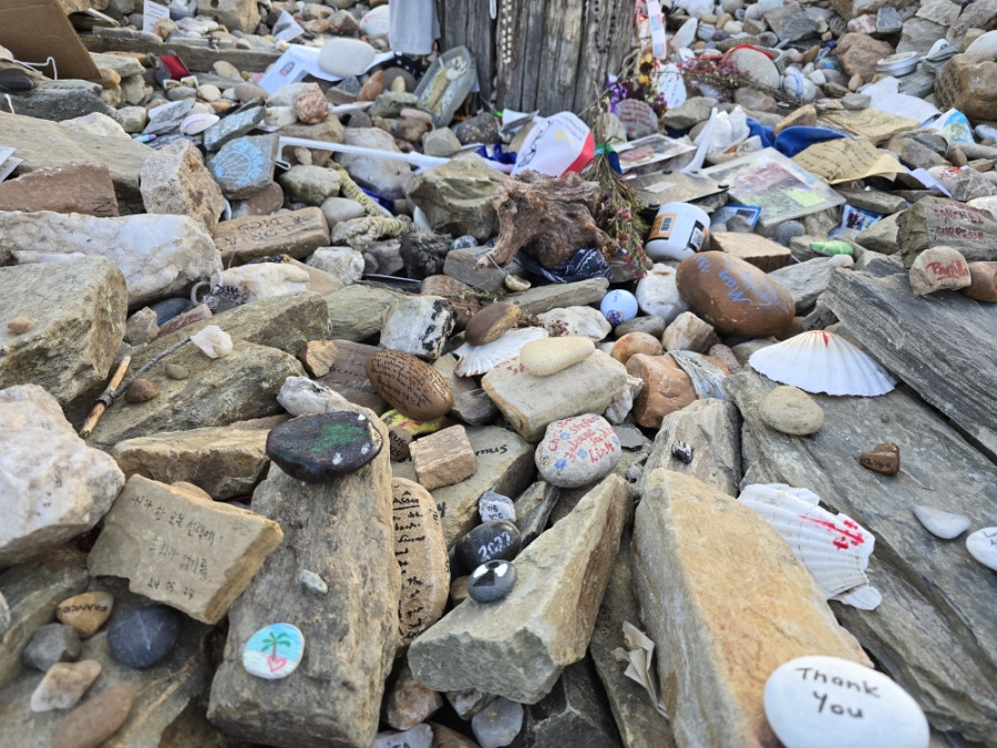 나를 힘들게 하는 마음을 돌에 담아 십자가 아래 내려놓았다. 주변에 무수히 쌓인 돌과 물건들을 보며 생각했다. 얼마나 많은 이들이 이곳에서 마음의 짐을 내려놓았을까? 그런 사연과 마음들이 모여 거대한 탑이 되었겠구나. 먼저 이 길을 걸어간 이들, 지금 이곳에 함께 있는 이들, 그리고 조금 전 마음의 짐을 내려놓은 내가 다시 새로운 시작을 할 수 있기를 눈을 감고 기도를 드렸다.