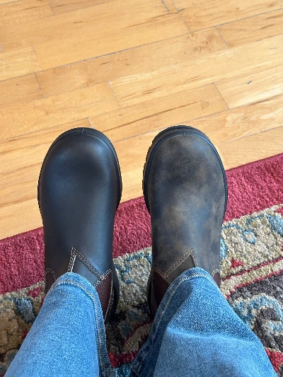 왼쪽이 신다 보면 자연스럽게 오른쪽처럼 된다고 한다. 아주 멋스럽다!