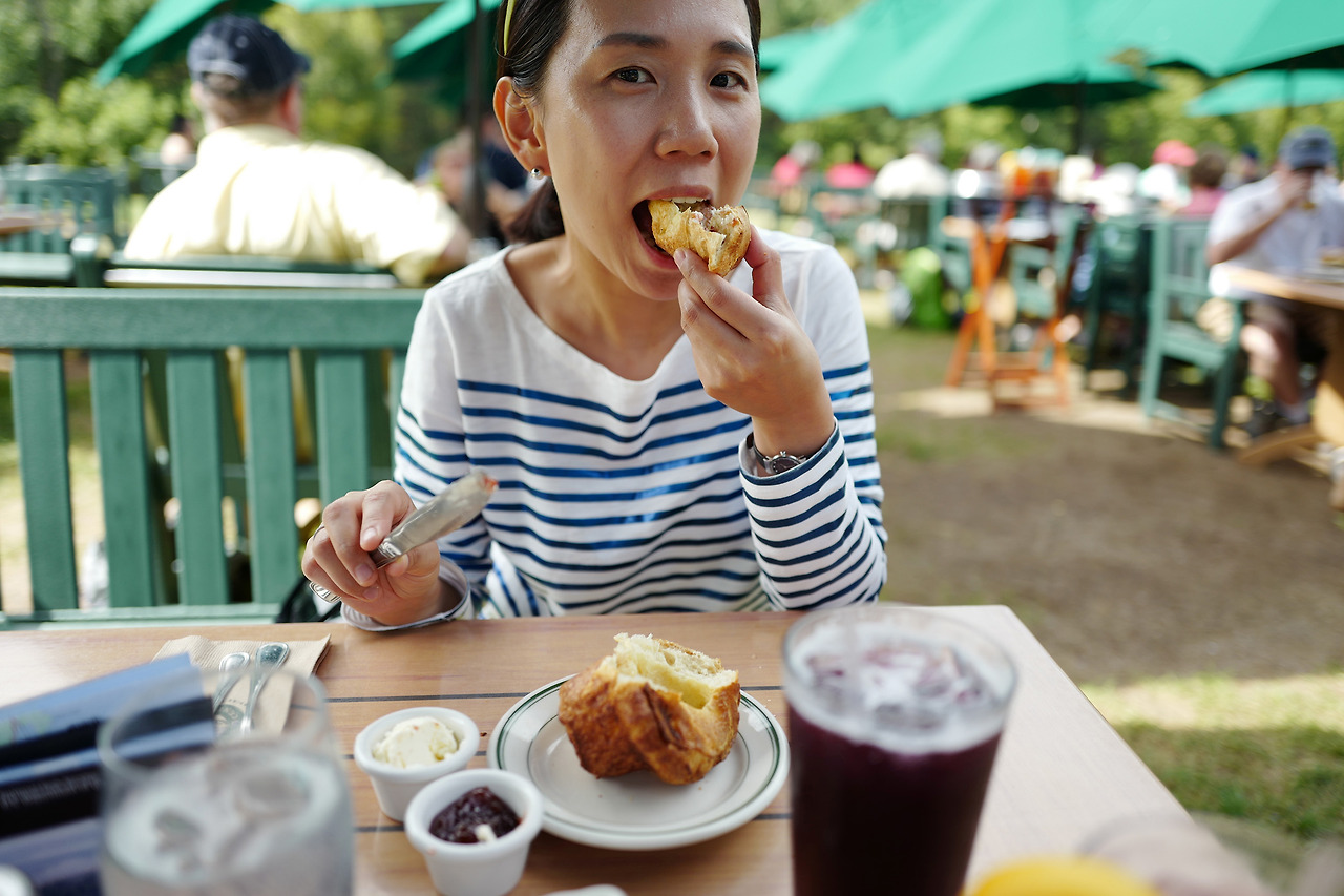 치즈와 빵을 좋아하지 않지만 언제부터가 나의 식성을 닮아 가더니 빵순이가 되어버린 아내님께서 이곳은 반드시 방문해야 하는 성지라고 해서 간단히 아침을 챙겨 먹은뒤에 찾아왔다. Jordon pond house 라는 이곳은 말이 연못이지 왠만한 호수만한 연못 옆에 위치한 식당이다. Maine이 blueberry 가 유명한것은 이곳에 가서 알았는데 그 유명한 blueberry 도 만든 소다와 그리 먹고 싶어하던 popover 빵을 주문했다. 따뜻한 popover빵에 쨈과 버터를 발라 먹으니 맛있기는 한데 아내는 이걸 집에가서도 먹겠노라며 오자마자 집앞 walmart에 가서 muffin 틀을 사오라고 시켰다... ㅎㅎ