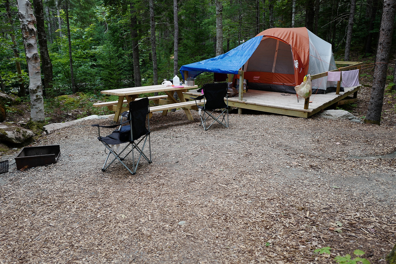 그래서 아내가 그동안 날 너무나 데려가 보고 싶어했던 Maine 이라는 주의 Acadia 국립공원으로 가기로 정했다. 이리저리 찾아본 끝에 발견한 무려 리뷰 점수 4.9점의 캠핑장을 찾아 예약했다. 결론 부터 얘기하면 가족들과 그 친구들이 운영하는 이 캠핑장은 단연 최고다. 잘 꾸며진 시설들과, 특히 아내가 예민하게 생각하는 화장실은 향기좋은 나무로 지어진 건물들이 캠핑장 곳곳에 있었고 텐트를 설치할 수 있는 platform이 만들어져 있어서 설치도 쉽고 새벽에 땅으로 부터 전해지는 찬기운을 느낄 수도 없었다! Gathering place 라는 만남의 장소? ㅎㅎ 는 저녁에는 아이스크림을 팔고 아침에는 매일 새로운 메뉴로 준비되는 간단한 아침 식사거리를 팔고 있다. 물론 WIFI도 된다. 단점이라면 생각보다 텐트치는 site간 거리가 가깝게 붙어 있어서 프라이버시를 중요시 한다면 조금 불편할 수도 있고, 캠핑장 안에 도로가 비포장 도로라 몇일동안 비가 내리지 않은 이곳에선 차가 돌아 다닐때마다 비포장 도로의 흙 먼지가 날리곤 했다.