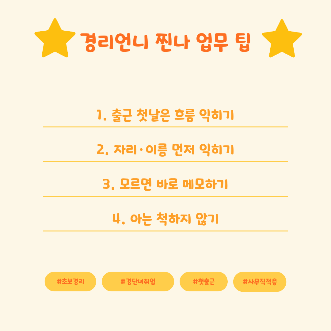 회사 적응은 한 번에 되는 게 아니라 하나씩 익히는 과정입니다.