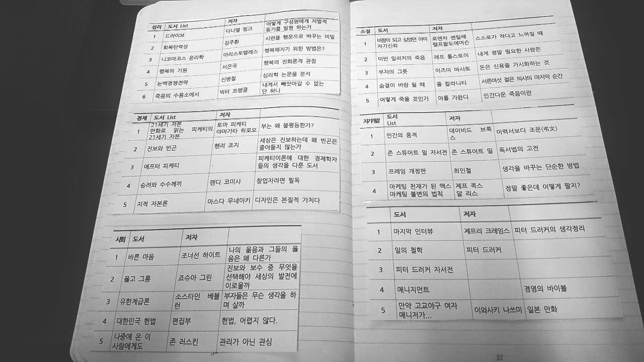 편식하지 않고 다양한 분야의 책을 읽으려는 그의 노력에 걸맞게 경제, 사회, 심리, 고전, 소설 등 참 다양한 분야의 책들을 독자에게 소개하고 있습니다.