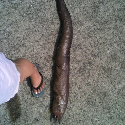 볼라벤에 밀려 온 이름 모를 물고기/ 태풍에 죽어 항구에서 말라가던 심해어종 곰치